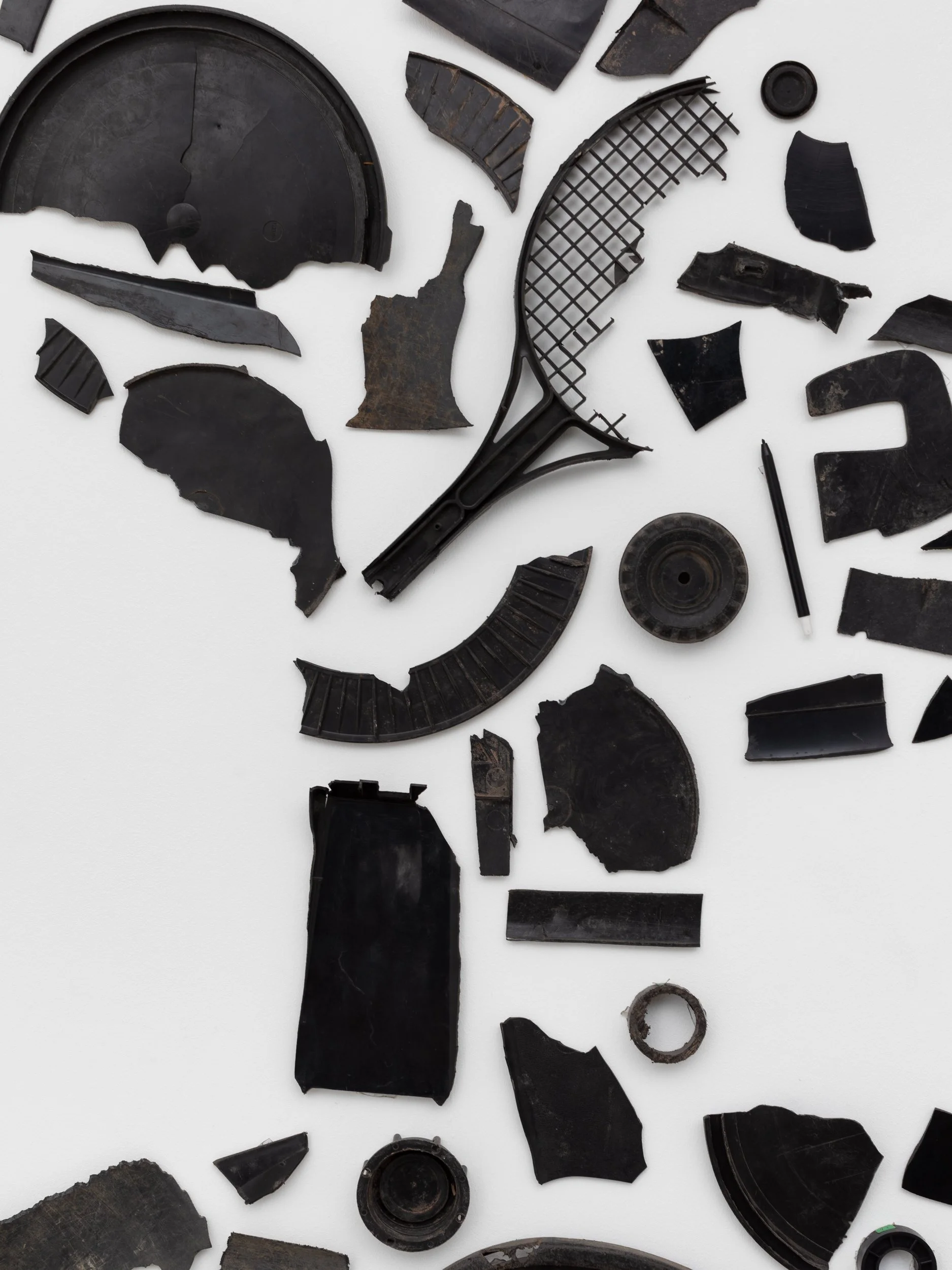 Highlighting current themes of salvaging and recycling found plastic fragments, Cragg conjures a sense of beauty and poignancy through this versatile material, understanding its sculptural and reproductive possibilities, but also aware that it was already being found in the landscape, as a new industrial layer within the geological sediment of the modern world.
